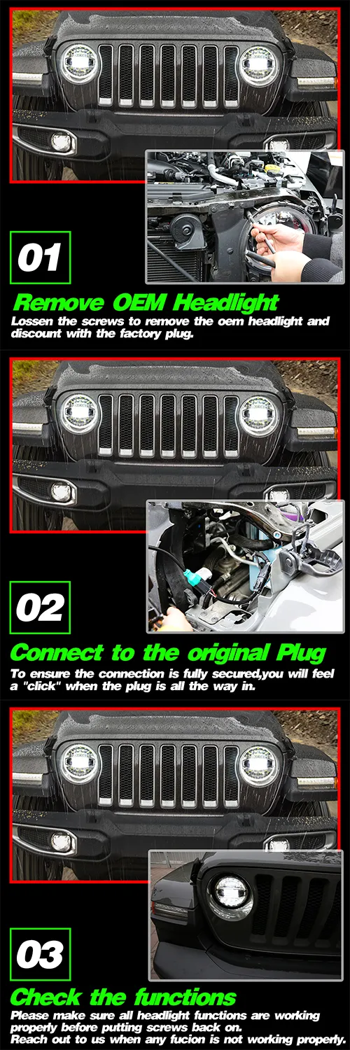 108W High brightness 2007~2016 jeep wrangler jk led headlights 7 inch round jk halo headlights with hi low beam drl